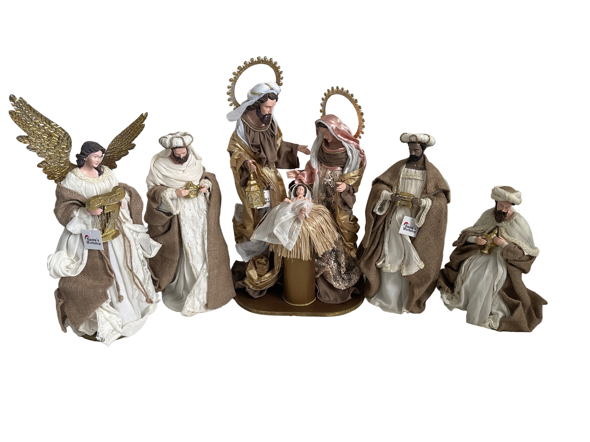 Celebrate the true meaning of Christmas with this exquisite handmade Religious Christmas collection. Featuring a stunning 55cm Holy Family centerpiece, three majestic Wise Men at 45cm, and a graceful 40cm Angel, each piece is meticulously crafted and exclusively designed. These limited-edition treasures capture the sacred nativity story with timeless elegance, making them perfect for creating a meaningful holiday display. With extremely limited stock available this season, these one-of-a-kind pieces won't last long. Order now from Santa's Workshop Direct and bring authentic spiritual beauty to your festive celebrations before they're gone for good.
