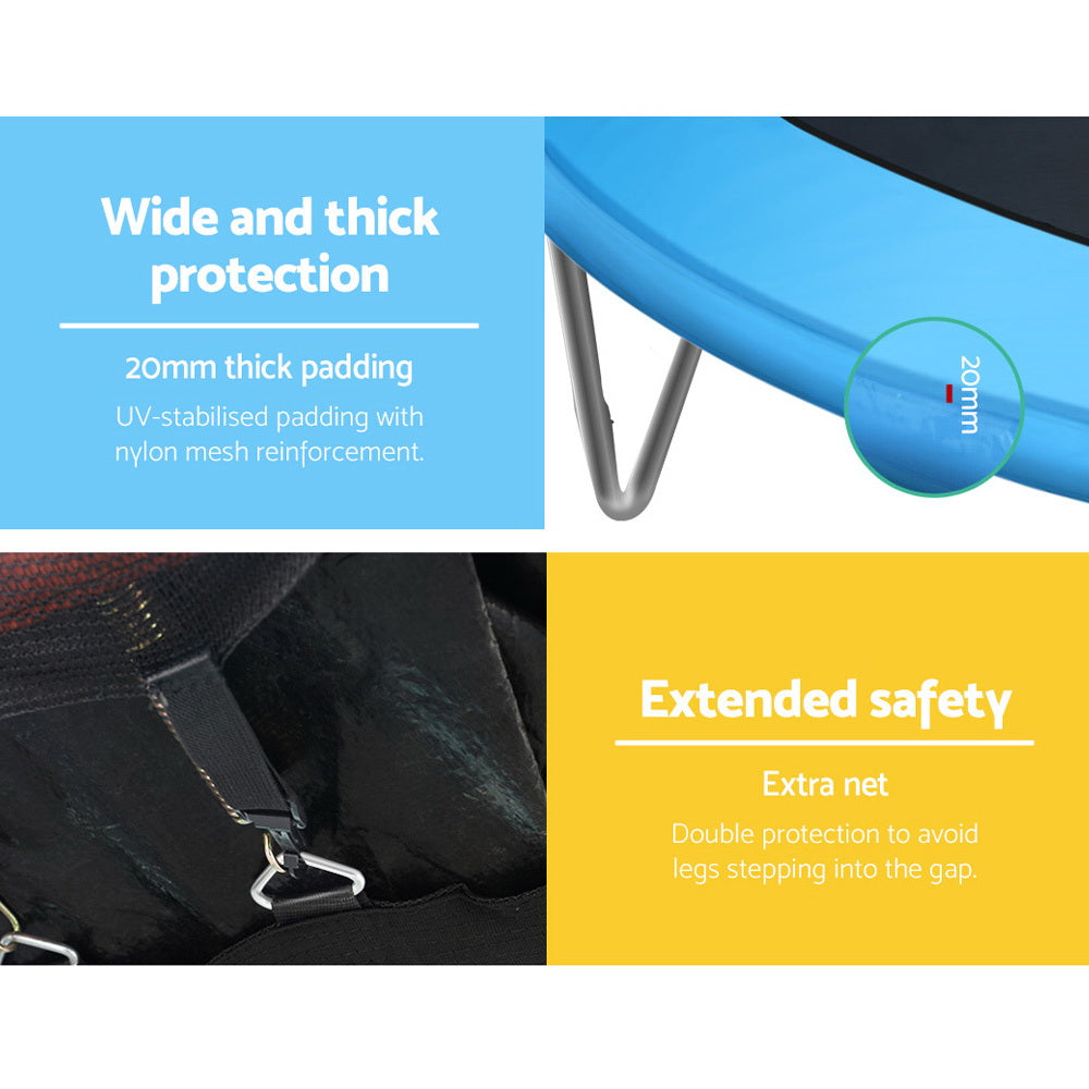 Bounce to your heart's content with our Trampoline. With its superior bounce characteristics featuring 64-piece triple rate springs, the 10-foot trampoline enables safe and durable bouncing with no worries. The heavy-gauge steel framework is designed to handle all robust play and is UV-tested for quality and reliability. Other great features include 8 posts for strong support, 20mm thick padding, anti-graze mat, safety netting and a double-lock zip-and-clip entry. So jump to it and order our trampoline today.