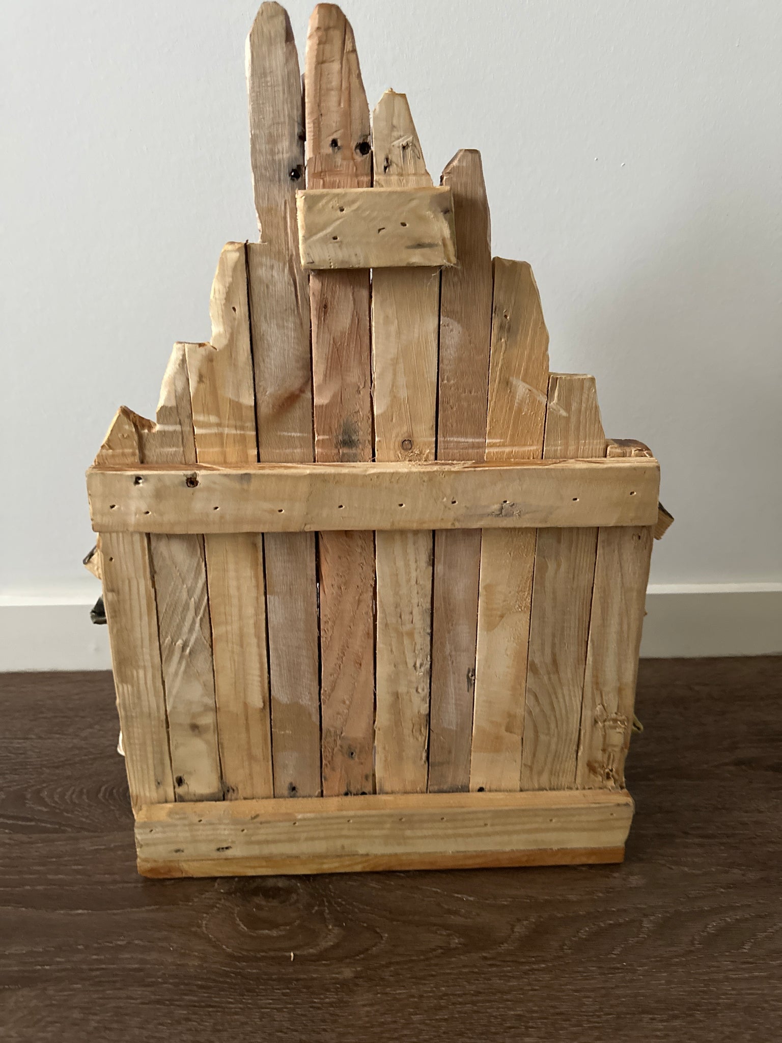 This 8 inch handcrafted religious figurine depicts the Holy Family and an angel on a stable. Measuring at 17.5 inches, this exclusive design will add a touch of spirituality to any home. Showcasing skilled craftsmanship and intricate details, this piece is a must-have for believers.5